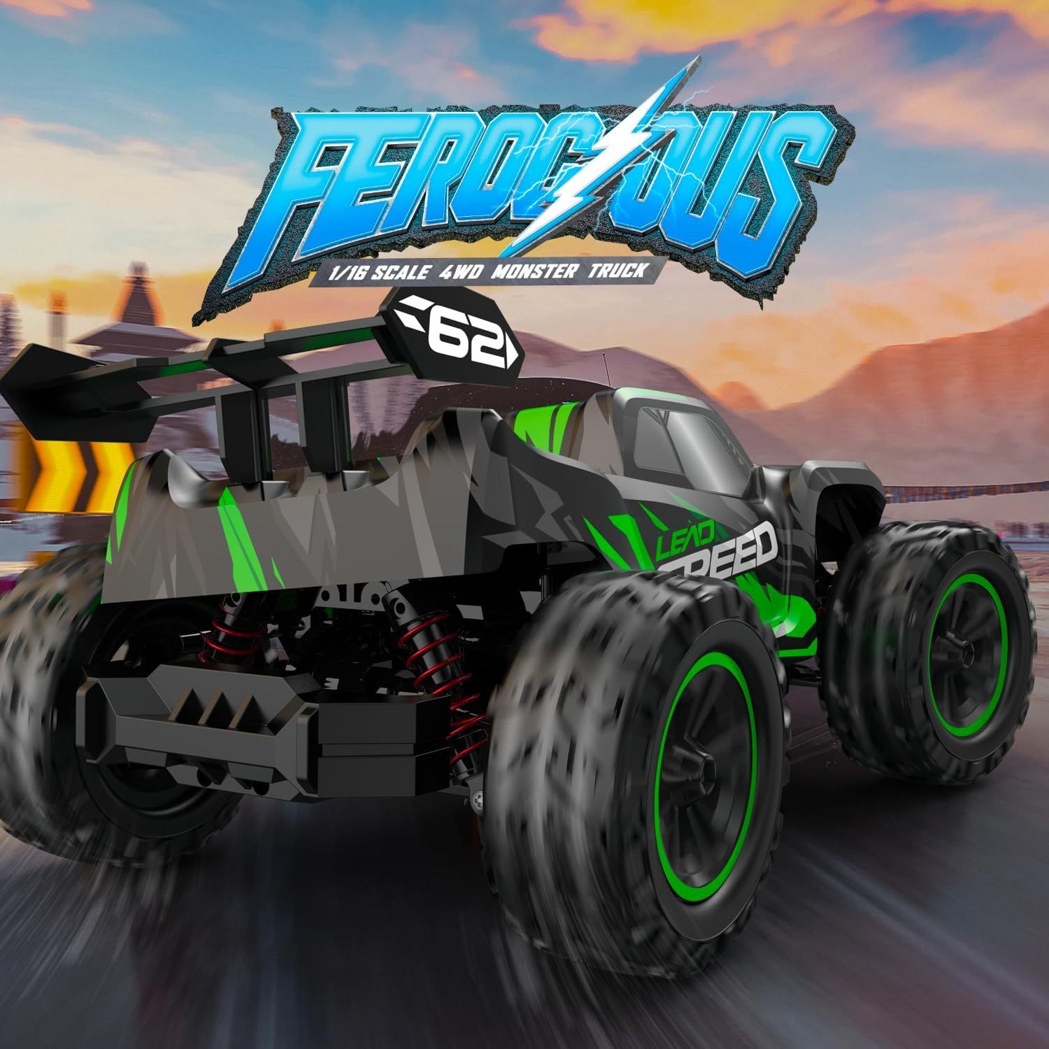 Features: – 4WD Electric 12” All Terrain Large Truck at 1/16 Scale