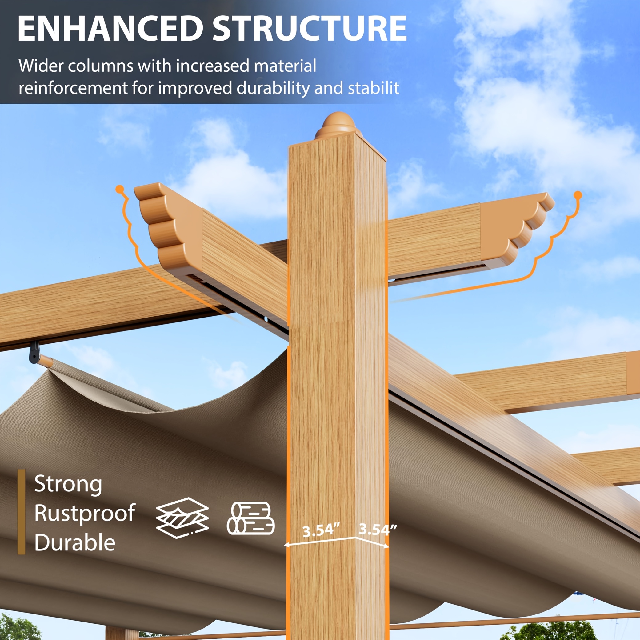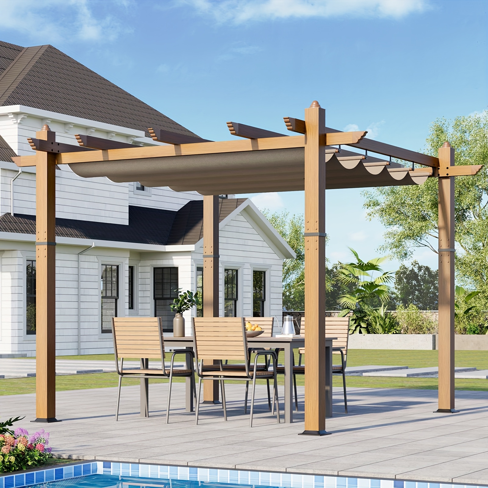 10x10ft Outdoor Retractable Pergola with Adjustable Roof - Modern Metal Patio Gazebo, Upgraded Faux Wood Grain Aluminum Pergola for Deck, Backyard Gardens, Porches, Grapevines, Khaki10x10ft Outdoor Retractable Pergola with Adjustable Roof - Modern Metal Patio Gazebo, Upgraded Faux Wood Grain Aluminum Pergola for Deck, Backyard Gardens, Porches, Grapevines, Khaki10x10ft Outdoor Retractable Pergola with Adjustable Roof - Modern Metal Patio Gazebo, Upgraded Faux Wood Grain Aluminum Pergola for Deck, Backyard Gardens, Porches, Grapevines, Khaki10x10ft Outdoor Retractable Pergola with Adjustable Roof - Modern Metal Patio Gazebo, Upgraded Faux Wood Grain Aluminum Pergola for Deck, Backyard Gardens, Porches, Grapevines, Khaki10x10ft Outdoor Retractable Pergola with Adjustable Roof - Modern Metal Patio Gazebo, Upgraded Faux Wood Grain Aluminum Pergola for Deck, Backyard Gardens, Porches, Grapevines, Khaki10x10ft Outdoor Retractable Pergola with Adjustable Roof - Modern Metal Patio Gazebo, Upgraded Faux Wood Grain Aluminum Pergola for Deck, Backyard Gardens, Porches, Grapevines, Khaki10x10ft Outdoor Retractable Pergola with Adjustable Roof - Modern Metal Patio Gazebo, Upgraded Faux Wood Grain Aluminum Pergola for Deck, Backyard Gardens, Porches, Grapevines, Khaki