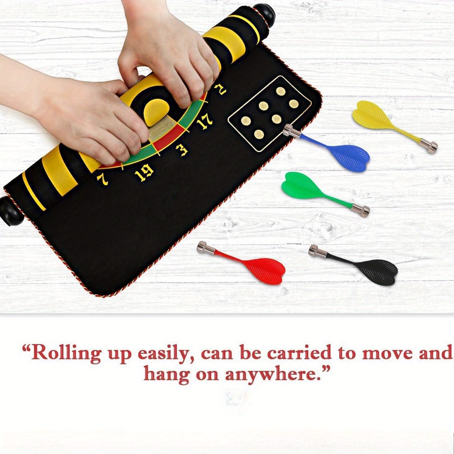 Our magnetic dart board can be easily rolled up for convenient carrying and storage! Whether for outdoor activities or indoor entertainment, you can enjoy the fun of dart games anytime. Experience the joy of yard