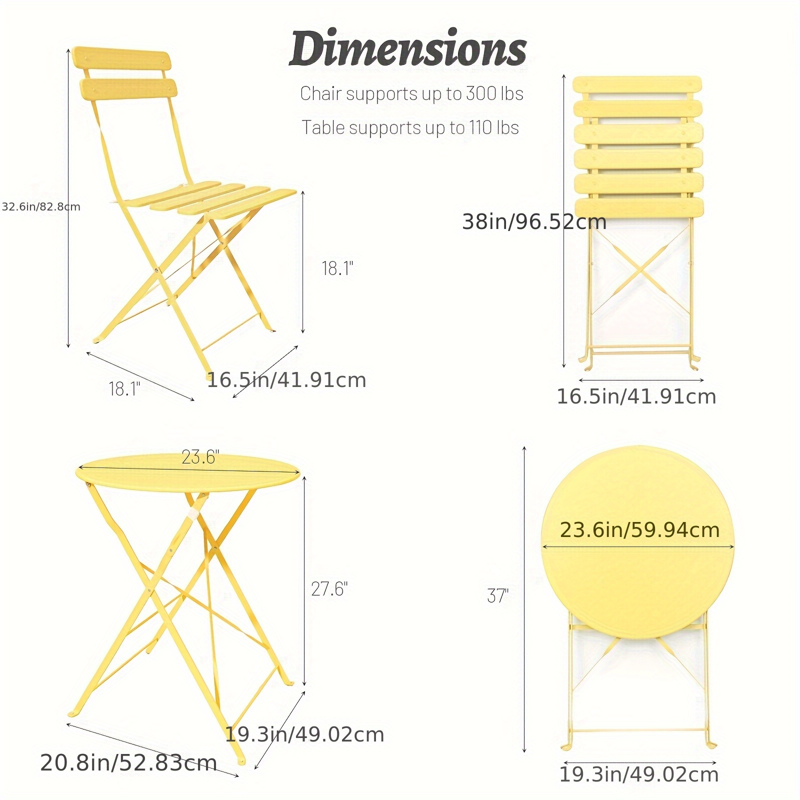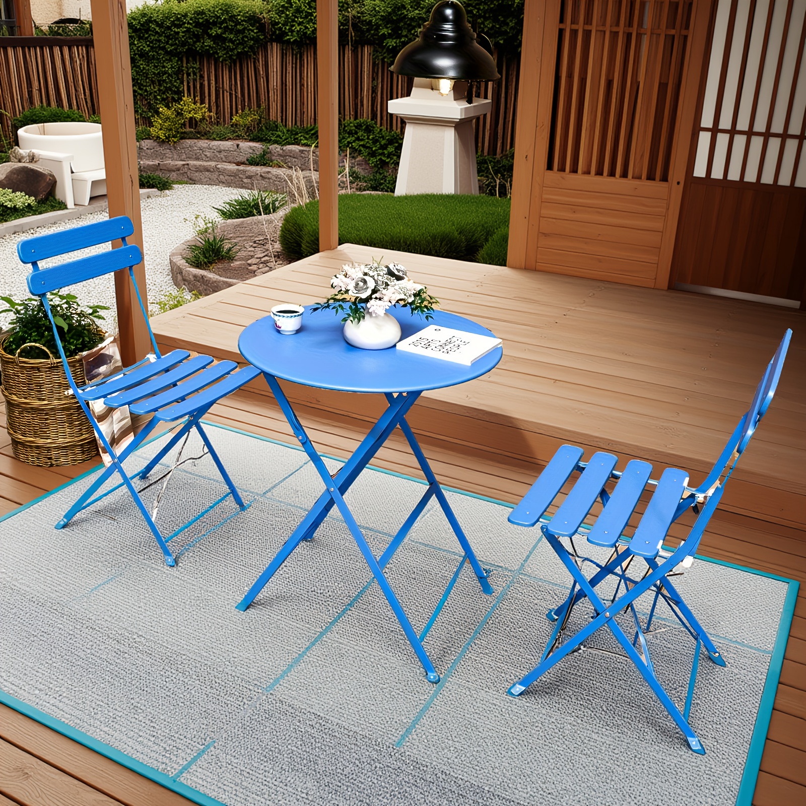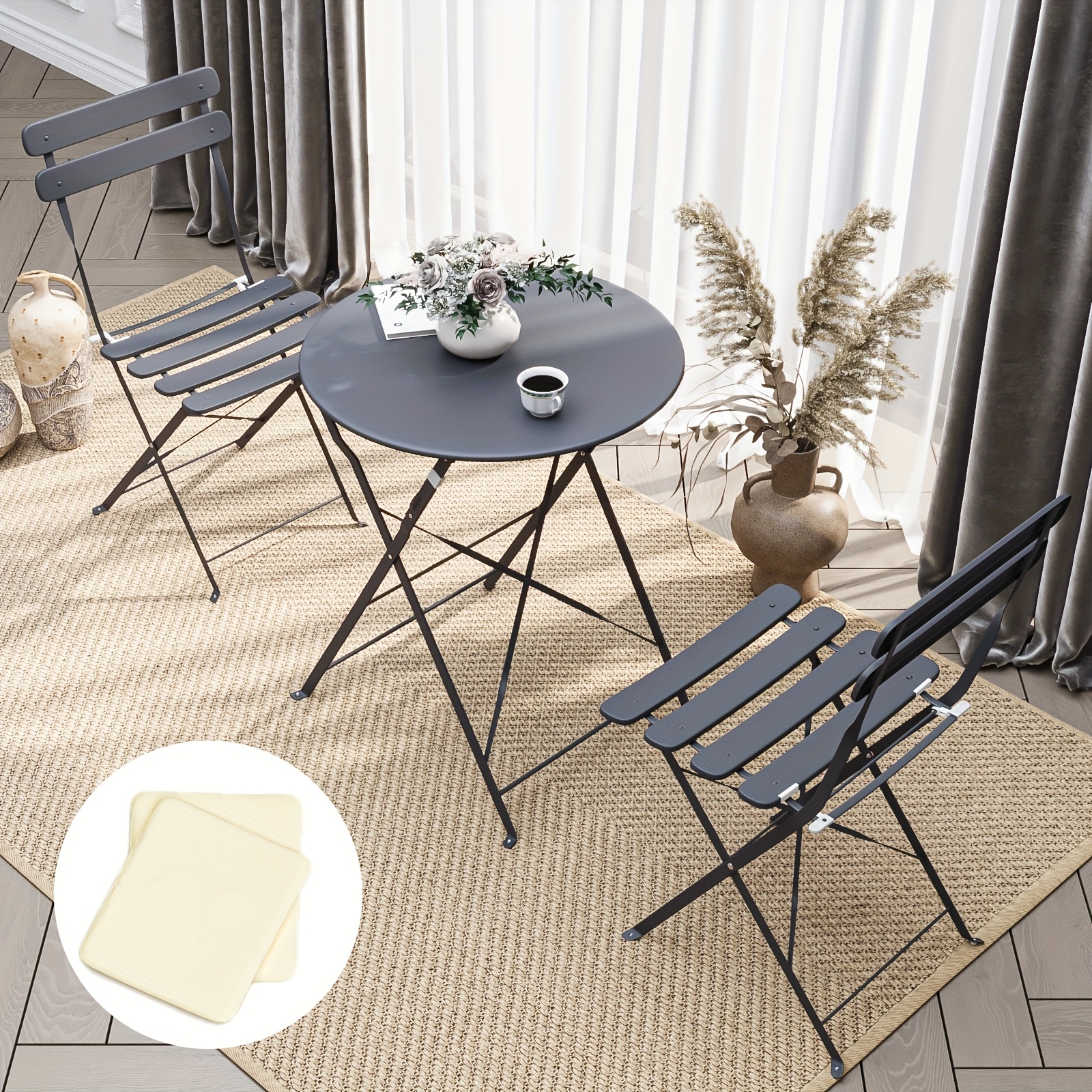 3pcs Patio Bistro Set Outdoor Furniture Set Folding Bistro Table And Chairs With Premium Steel Frame Weather Resistant Conversation Set For Bistro Balcony Porch Yard Garden