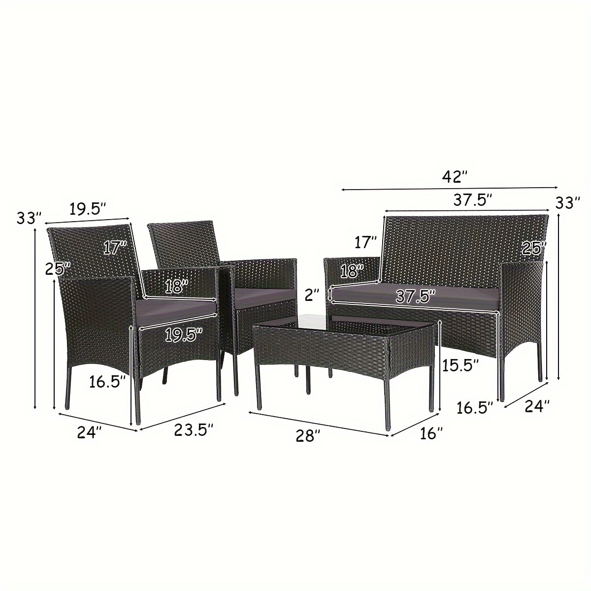 Loveseat Size: 42″ x 24″ x 33″ (L X W X H)
