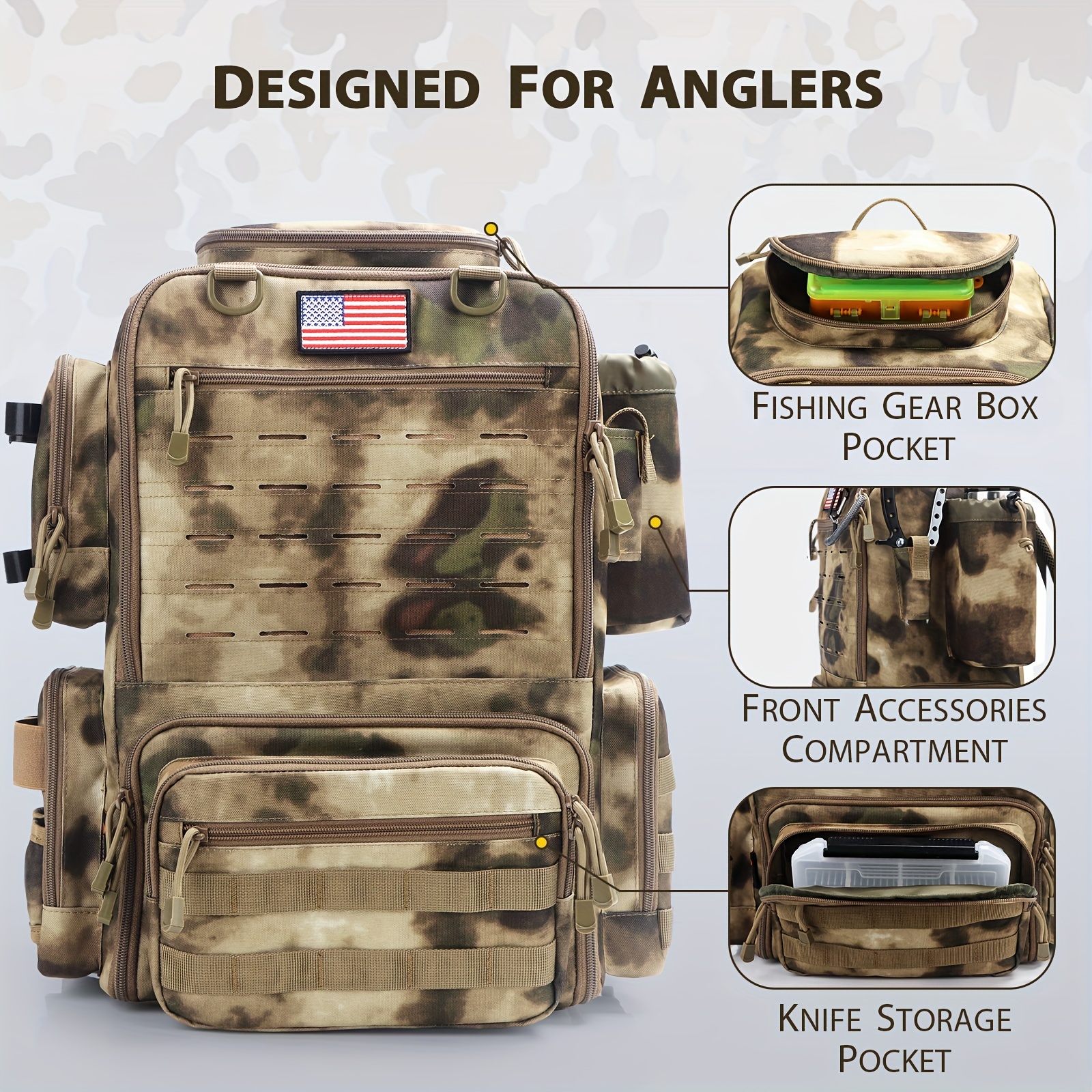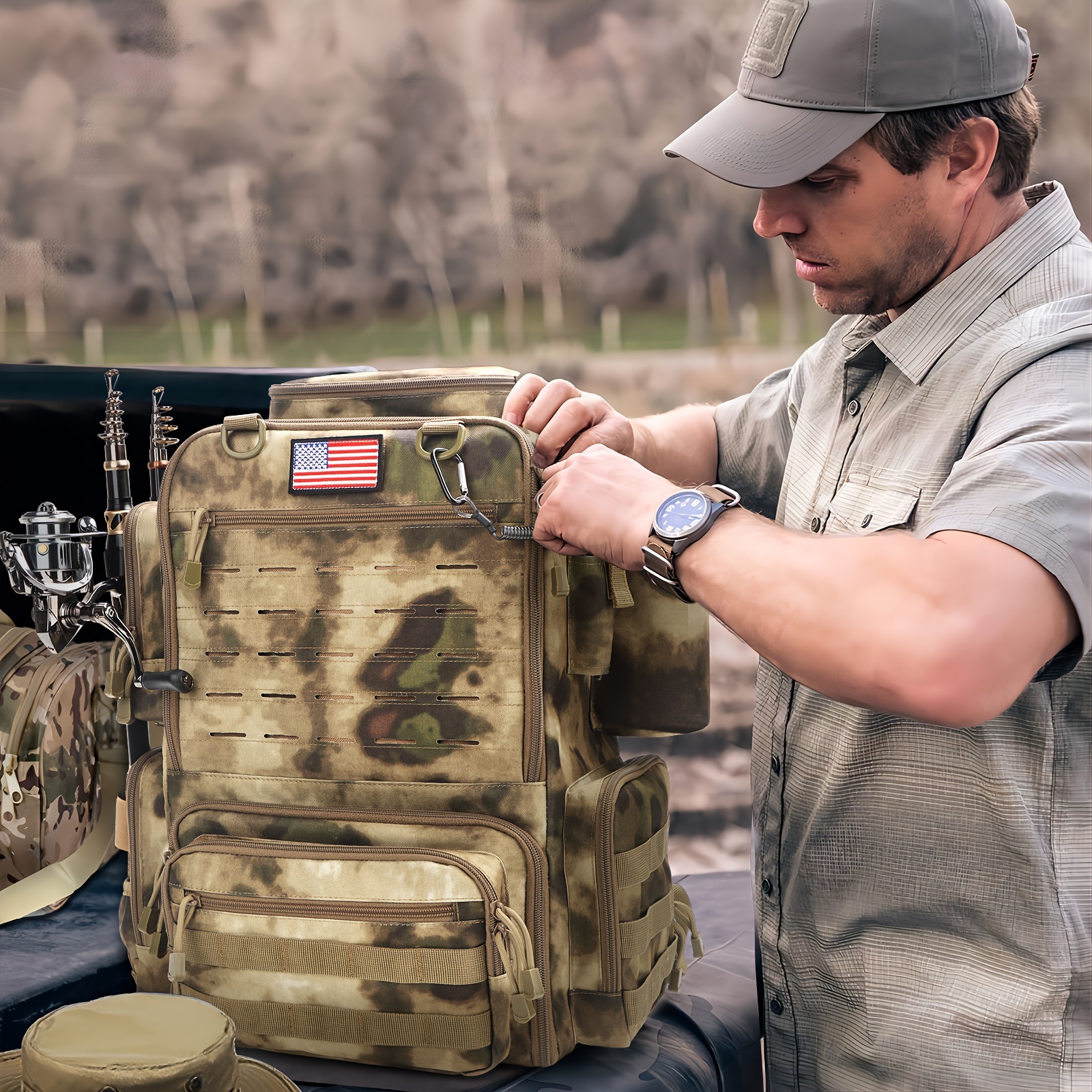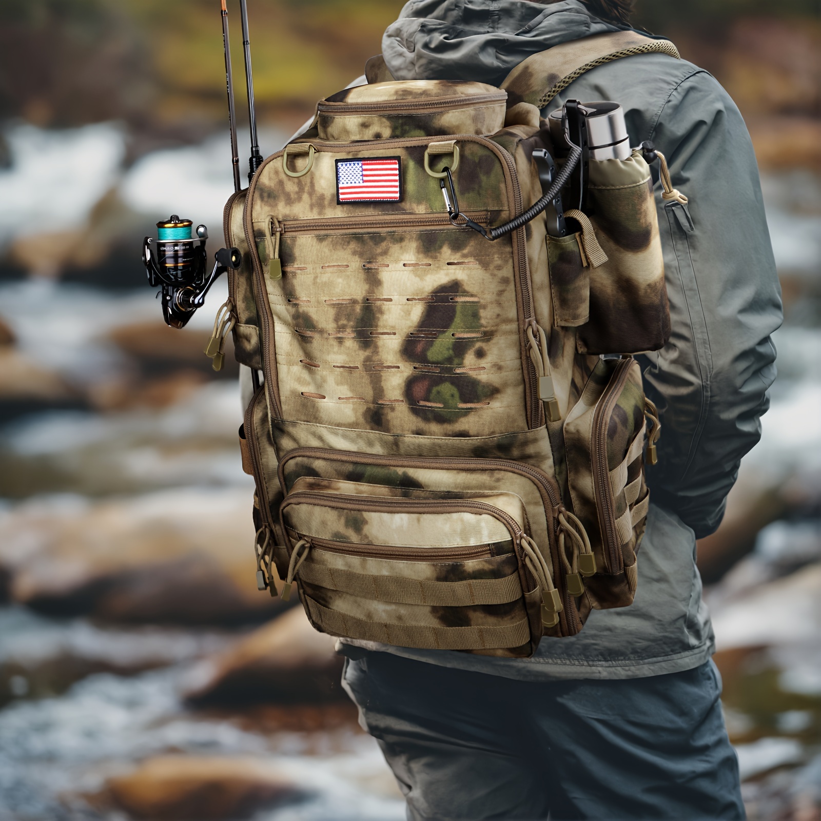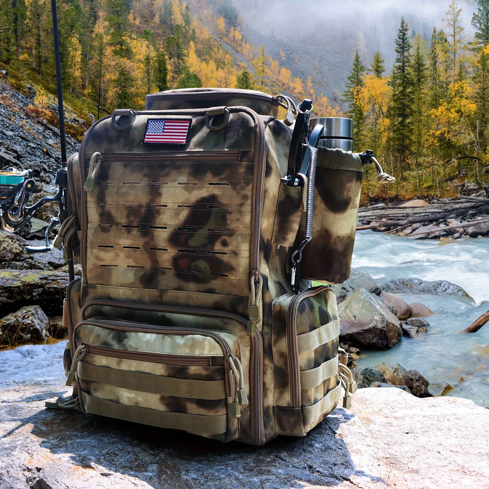 Fishing Backpacks with Rod Holders, 11.89gal Large Fishing Tackle Bag Store Fishing Gear for Fishing, Camping, Hiking, Fishing Gifts for MenFishing Backpacks with Rod Holders, 11.89gal Large Fishing Tackle Bag Store Fishing Gear for Fishing, Camping, Hiking, Fishing Gifts for Men