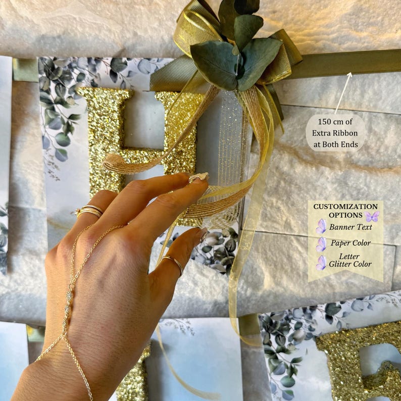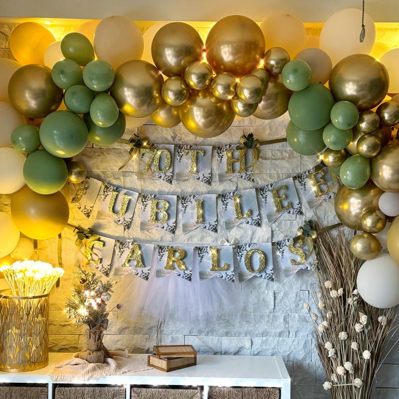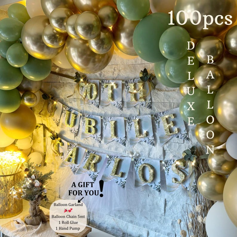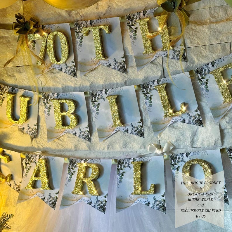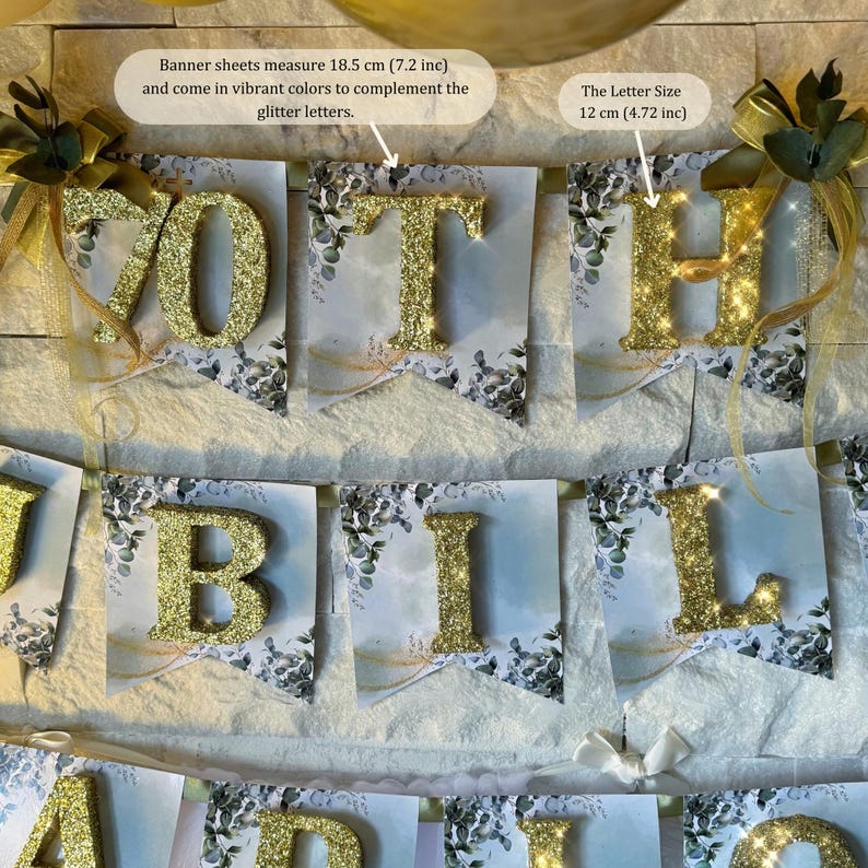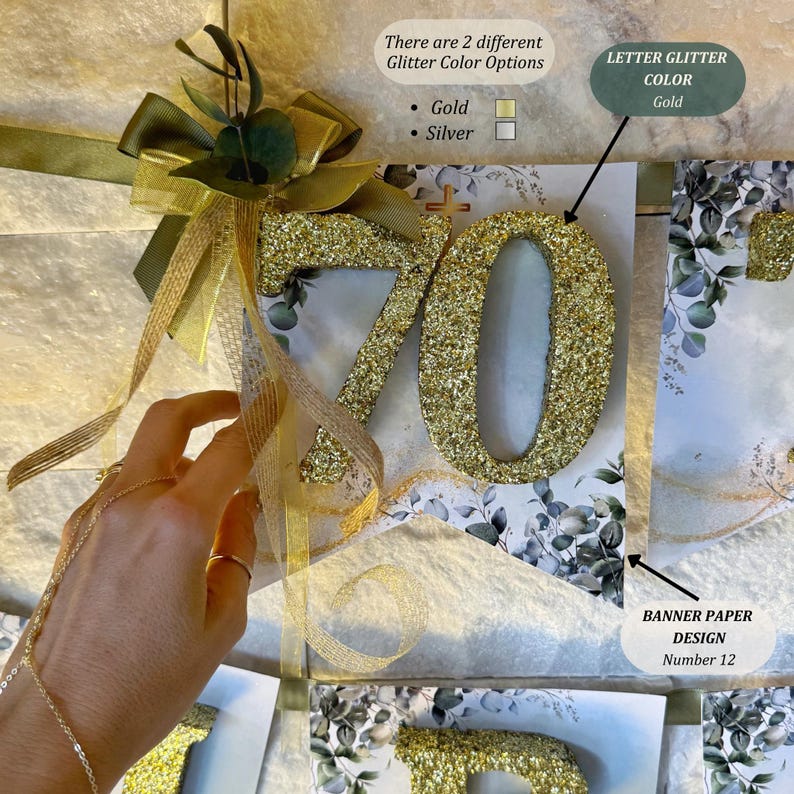 Glitter Name Banner Party Decoration, Personalized Favors for 40th, 50th, 60th, 70th, 80th, 90th, 100th Birthday Parties, Adult Birthday