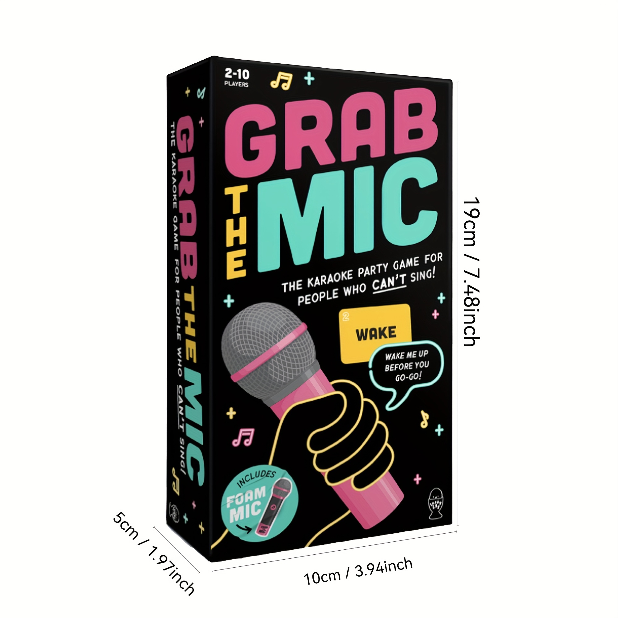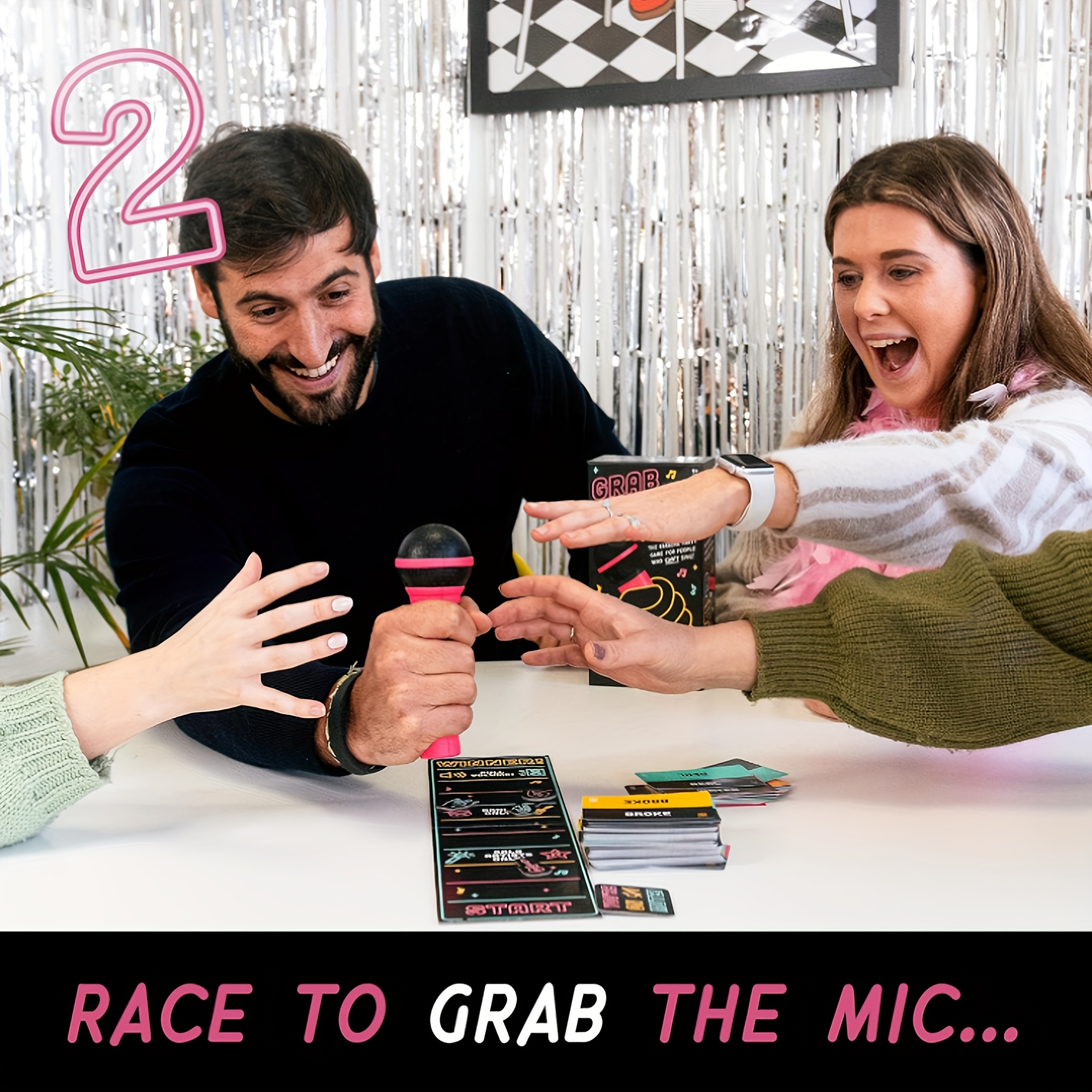 Grab the Mic – The Karaoke Party Game for 2-10 Players, 250 Lyric Cards, Pink & Black Microphone Design, Ideal for Family Game Nights & Birthday Parties, Family Entertainment|Playful Design|Fun Game Night, Karaoke Party Supplies