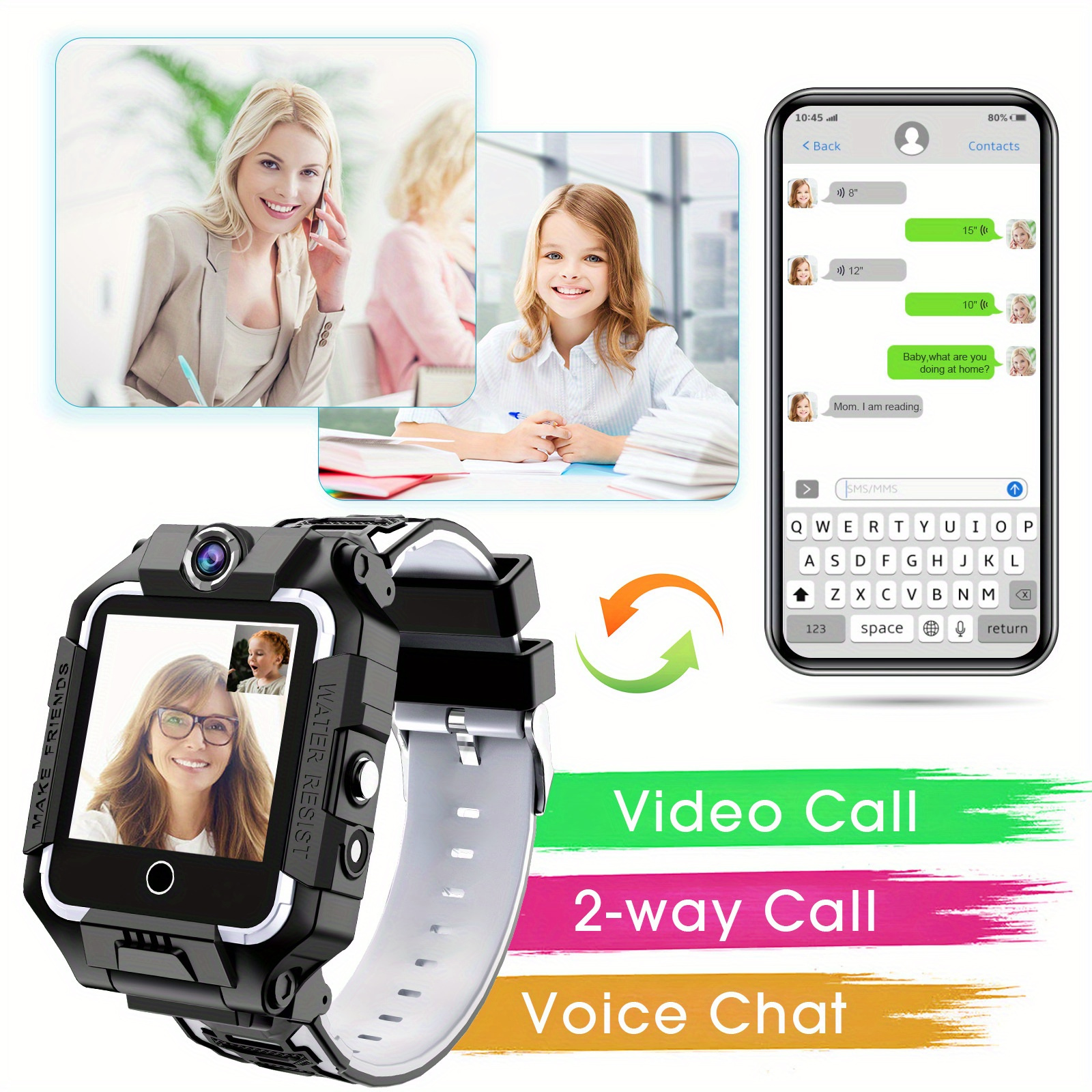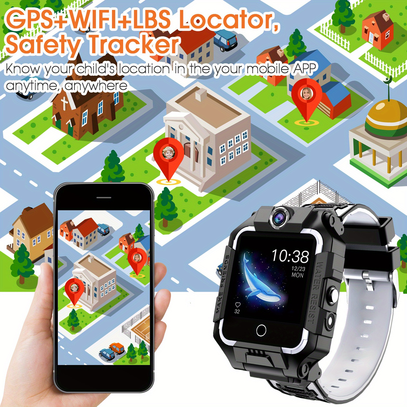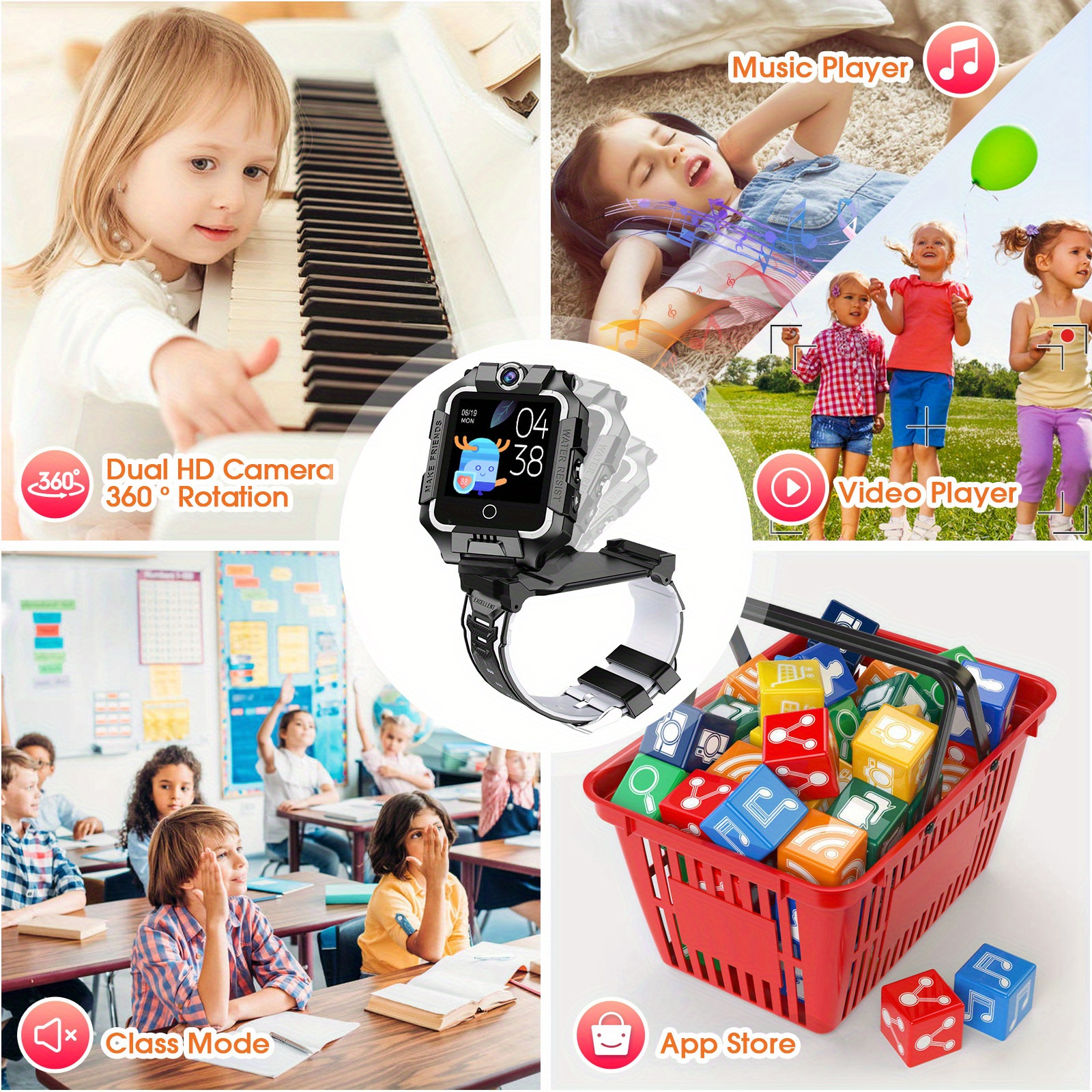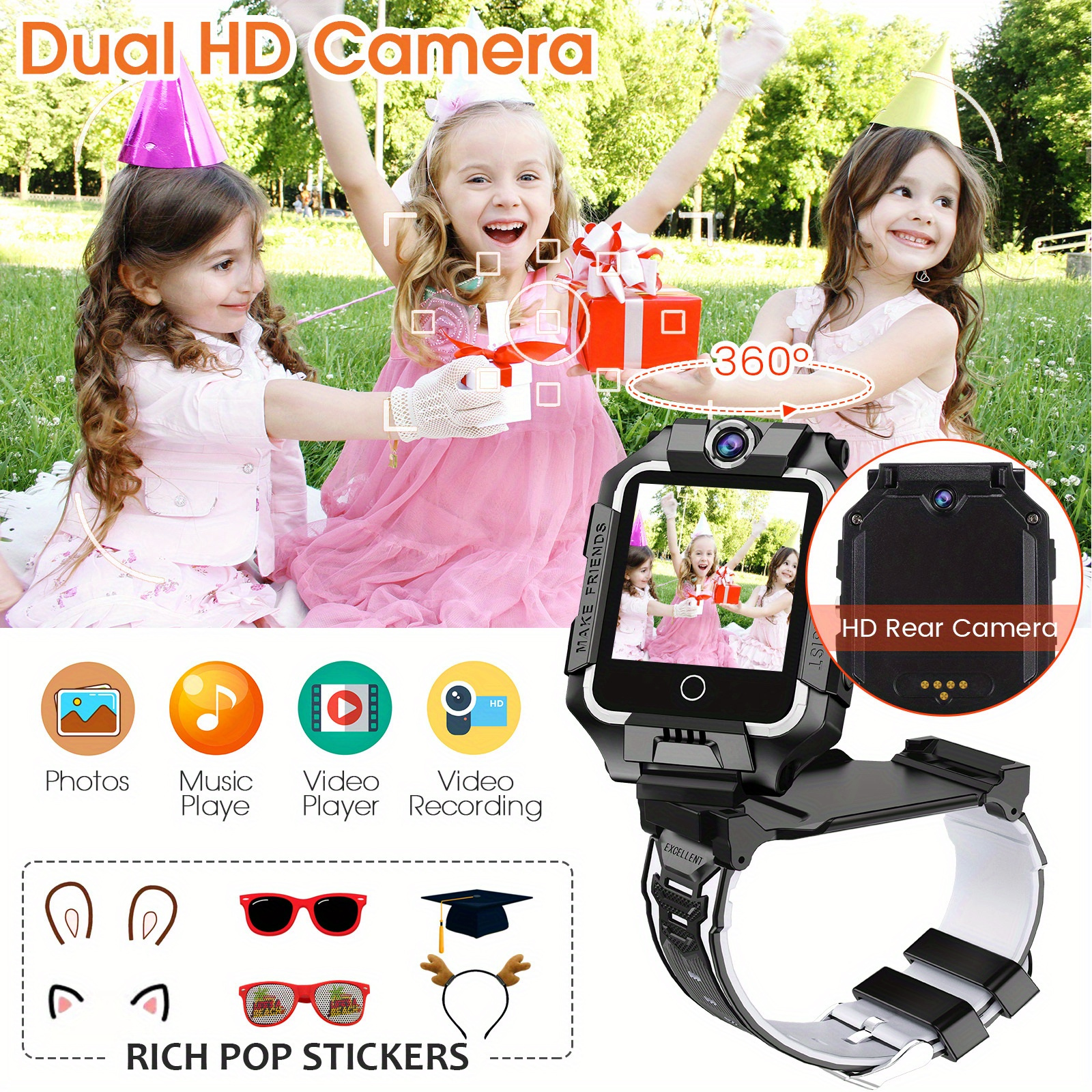 3.Facial Recognition & Dual Cameras: Equipped with advanced facial recognition technology and dual cameras for added security and creative photo opportunities. Enables children to explore the world around them while ensuring their safety.