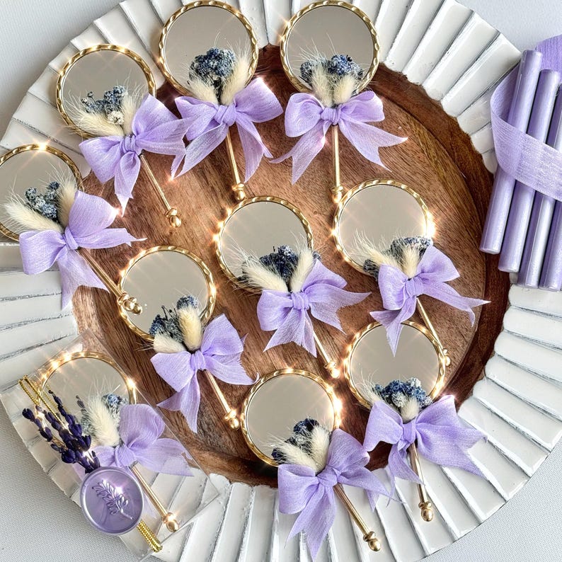 Personalized Gold Hand Mirror Favors, Lavender Baby Shower Gifts, Welcome Baby Pocket Mirror Keepsakes, Birthday Party Luxury Favors