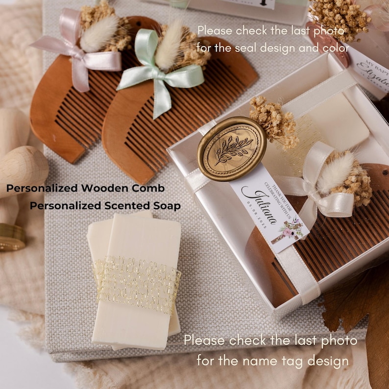 Personalized Wooden Comb, Handmade Scented Soap, Custom Baby Shower Favor, Bridesmaid Gifts, Baptism Keepsake, Wedding Guest Favors